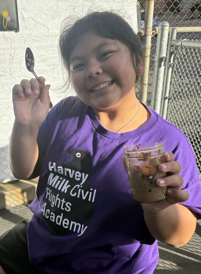 We started our exploration of the history of San Francisco with the Indigenous people of what is now called the San Francisco Peninsula, the Ohlone. In the classroom we watched a short film about the chefs and activists behind Cafe Ohlone (a restaurant just across the Bay Bridge we have taken multiple groups of Harvey Milk fourth and fifth graders to on field trips!). We learned that Ohlone foodways have been on this land since the beginning, are here in the present and thriving, and will continue to survive into the future.