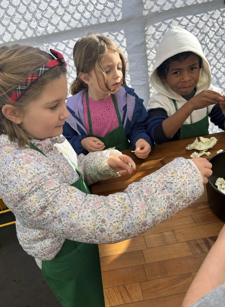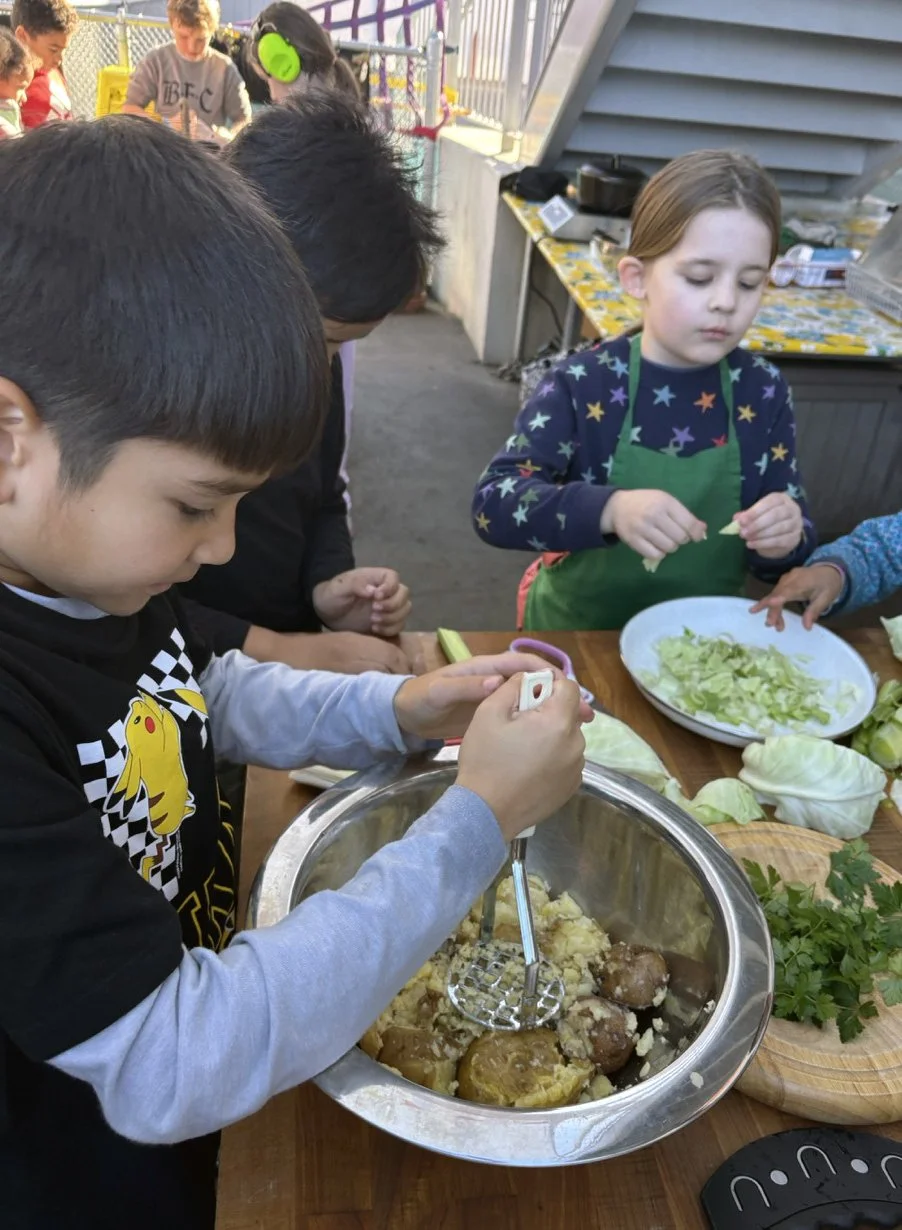 In the kitchen we made a traditional Irish potato dish, colcannon, and enjoyed it with a side of Irish soda bread, which the second and third grade chefs were disappointed to learn is not made with Coca-Cola! We are grateful for a healthy potato harvest and for enough food to go around when we share a meal together at school.