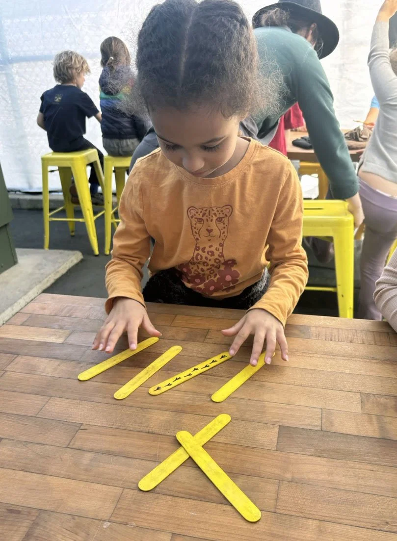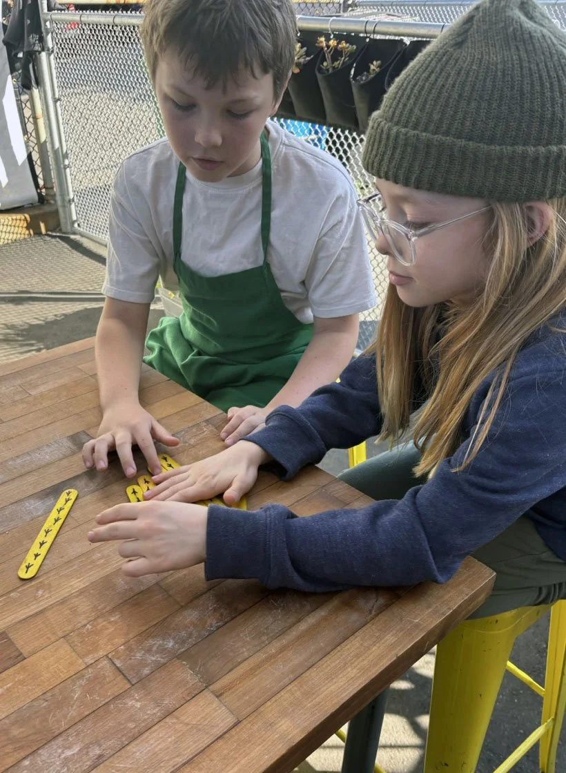 While our tea steeped, we played the game of staves, an Ohlone game of chance that traditionally uses elderberry or willow sticks. We used popsicle sticks, but it did not lower the stakes and there was heated competition to see who at each table could get to five points first. Due to our limited access to ovens, each class made a batch of brownies for the next class or for the community, a nice symbol for the way history and legacy works. What we create today we pass on to those who come after us.