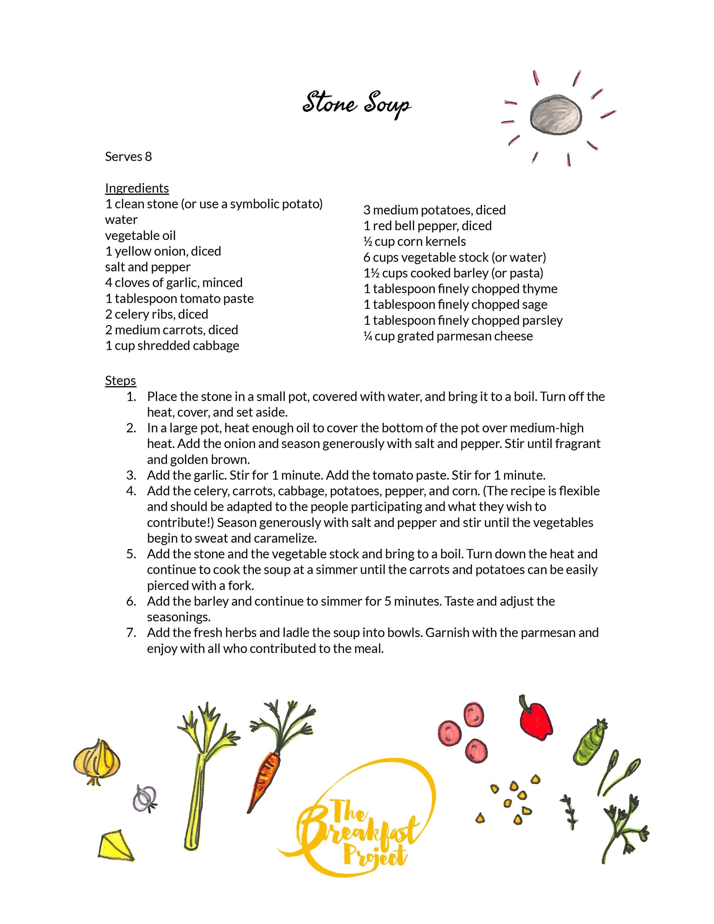 In the classroom this week we read Marcia Brown’s retelling of the old European folktale Stone Soup. We talked about what the story is trying to tell us and why its message has survived for decades. The villagers who were at first hesitant to share their resources with newcomers learn that when they come together as a community, they create a meal and an experience far more delicious and meaningful than if they had worked alone.