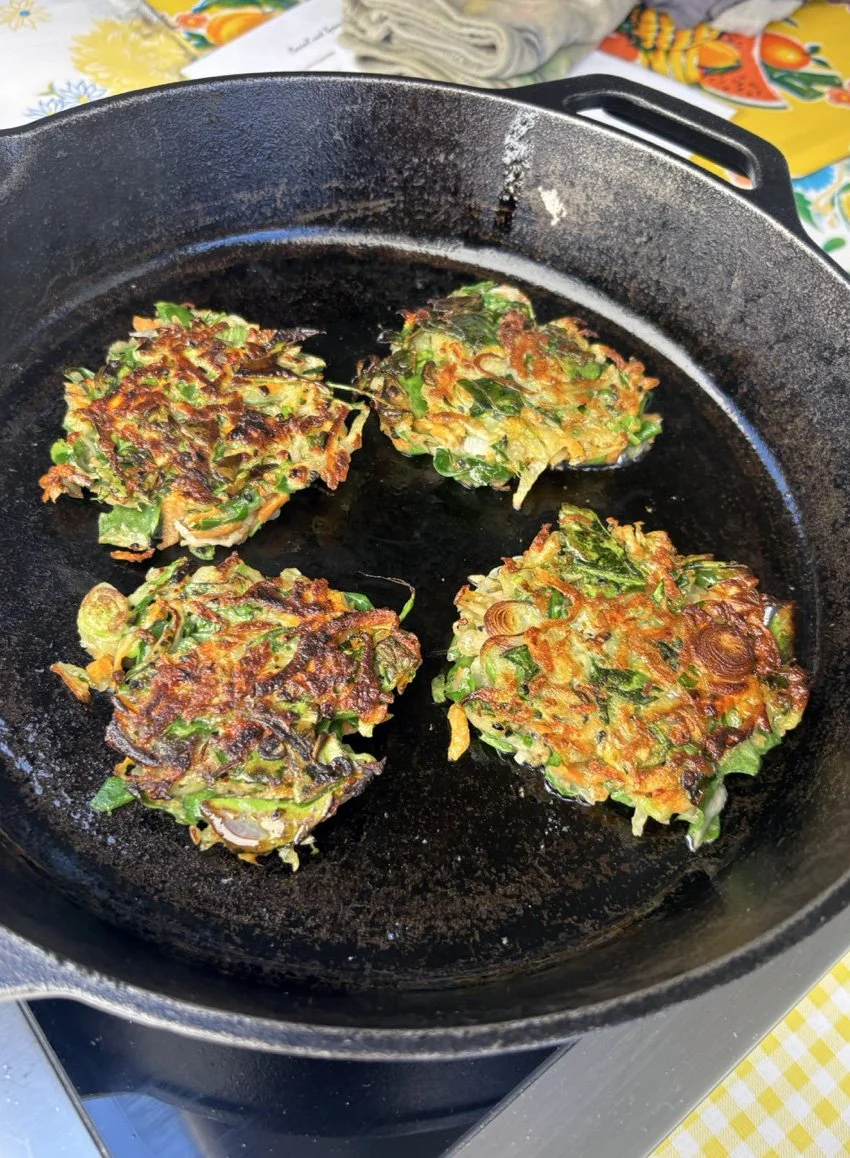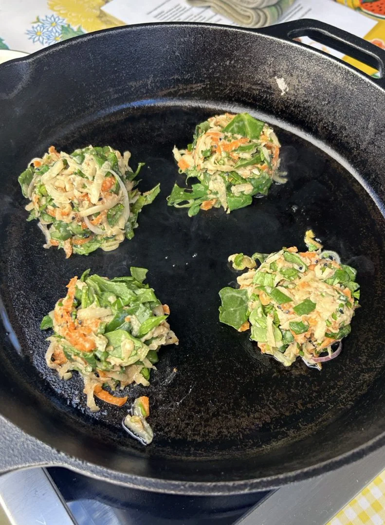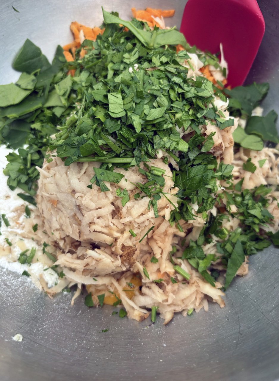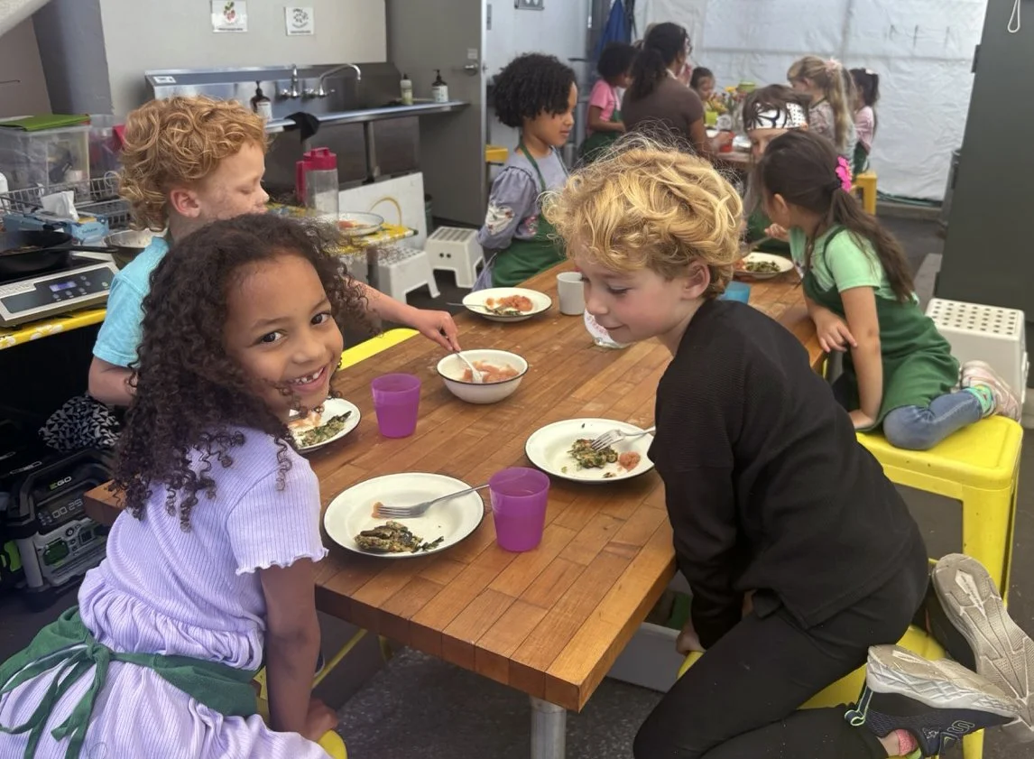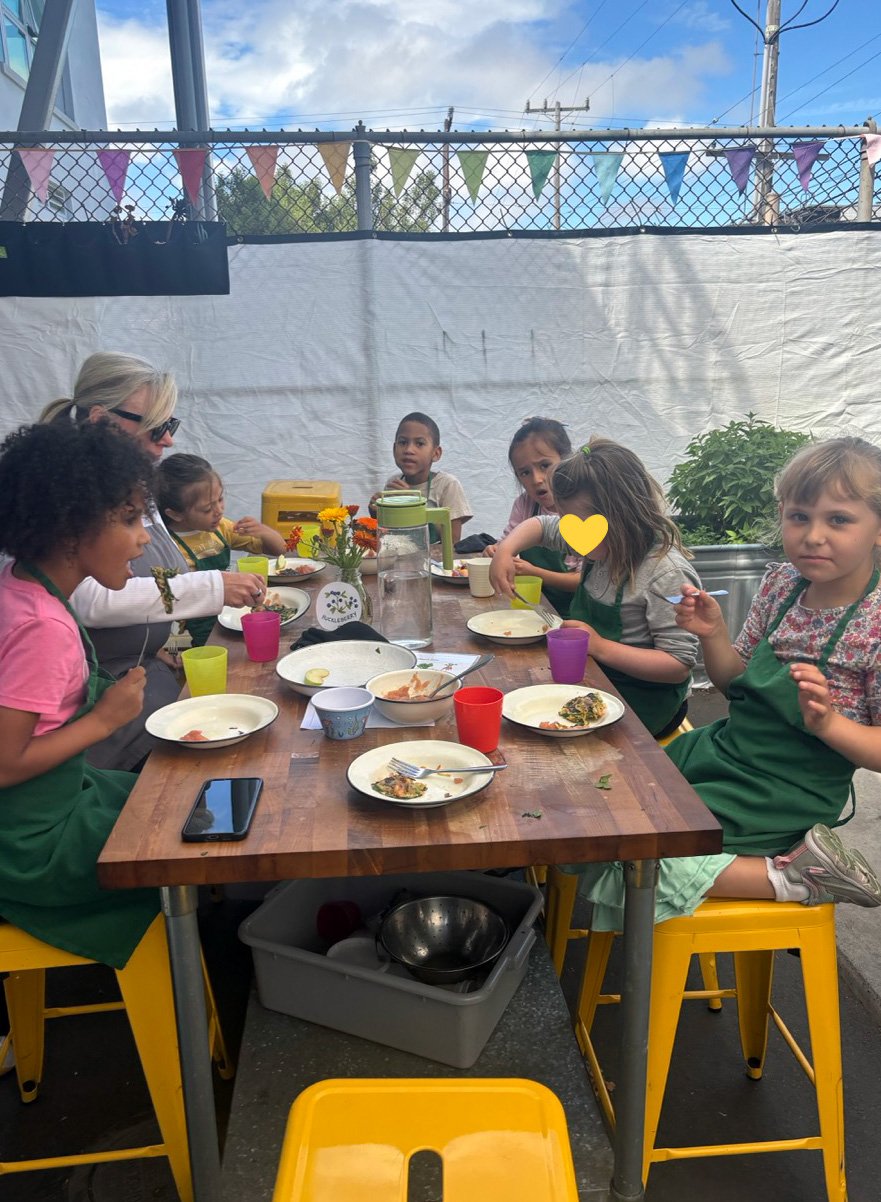 In the the kitchen the kindergarten chefs ripped up New Zealand spinach to add to a batter for carrot and spinach latkes. While the latkes were frying, they participated in a mindful tasting of four varieties of apple: Cosmic Crisp, Fuji, Granny Smith, and Pink Lady. We smelled the apples, listened to them, noticed many had speckles and contained multiple colors, chewed them thoughtfully, and observed all the juicy, tart, sweet flavors. Then we enjoyed the latkes with a homemade applesauce made from the same four varieties of apples we tasted. When we practiced mindfully eating our meal together, some chefs noticed that the latkes had the same aroma as sausage or that the applesauce contained lemon. Mindfulness is a practice we can continue to employ throughout our lives to keep our bodies and our communities strong and healthy.