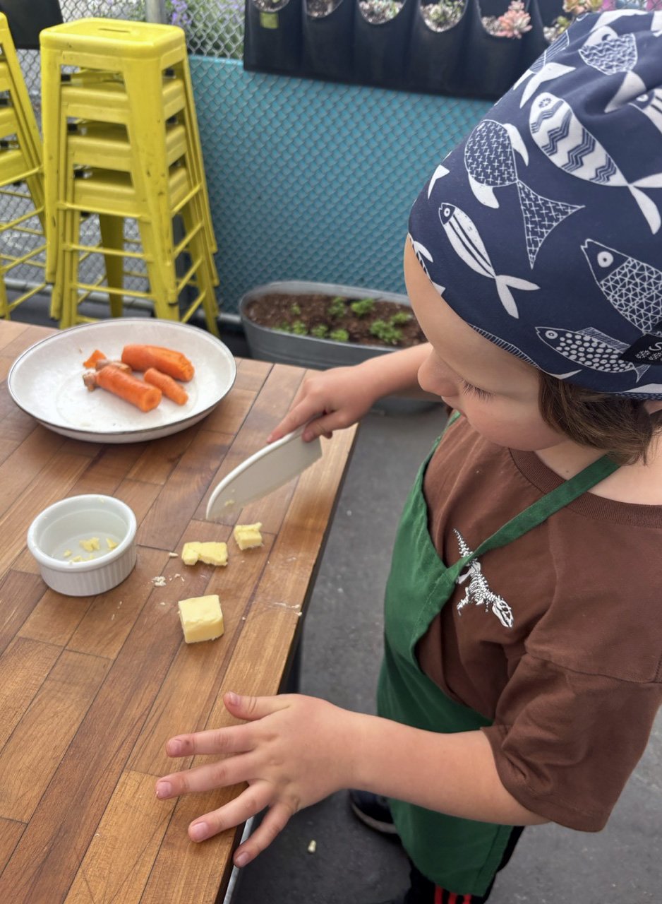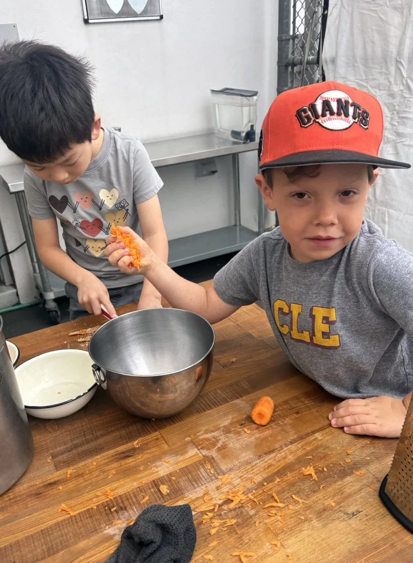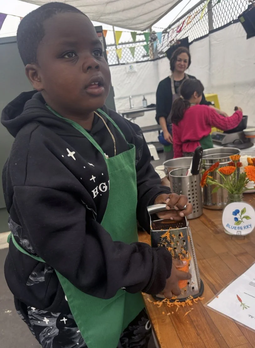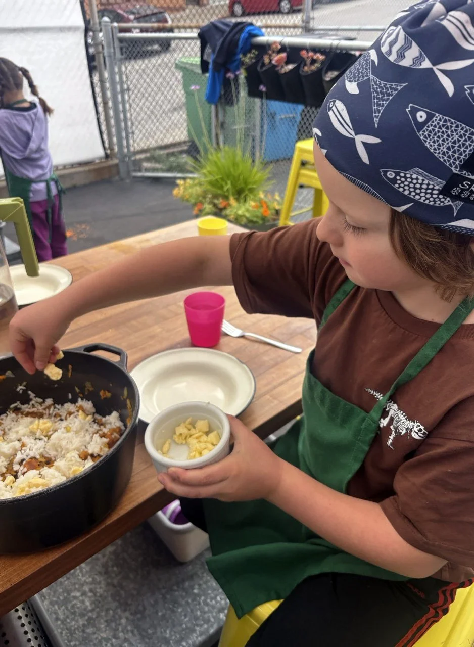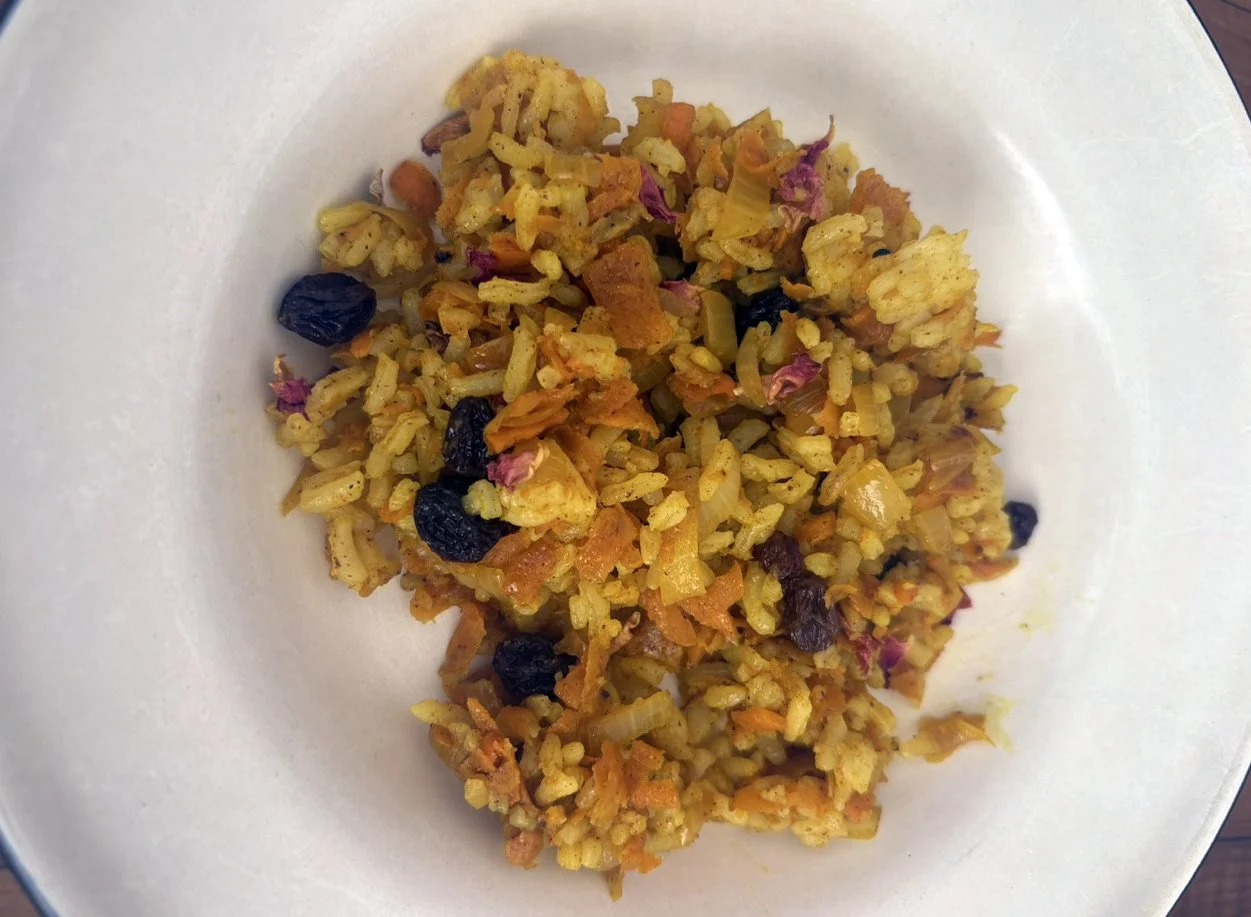 In the kitchen we made a Persian carrot rice dish, havij polo, featuring many flavors we may not have regular exposure to such as saffron, turmeric, candied orange peel, rose petals, and the use of cinnamon in a savory dish. The first grade chefs truly demonstrated their comfort and skill in the kitchen classroom and used a variety of tools to create a fragrant, colorful, and deeply tasty rice preparation from the Middle East.