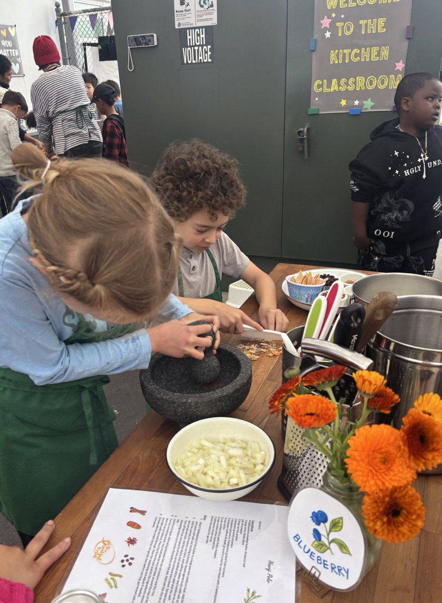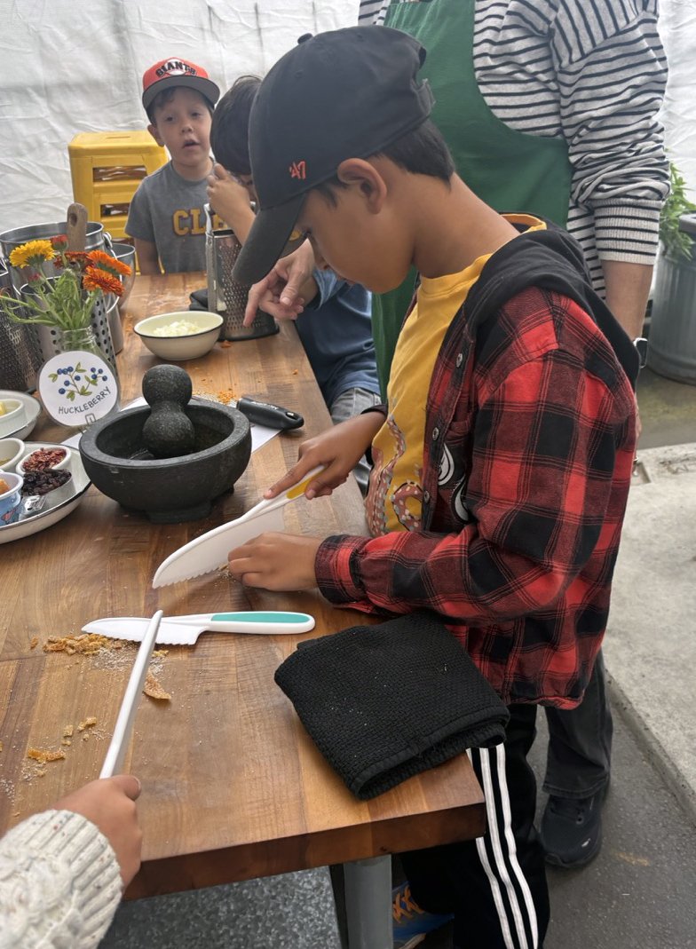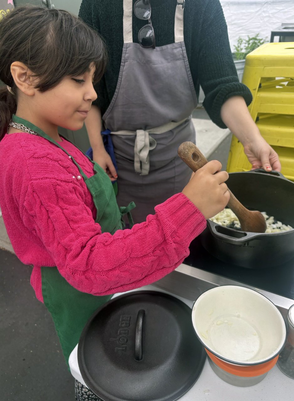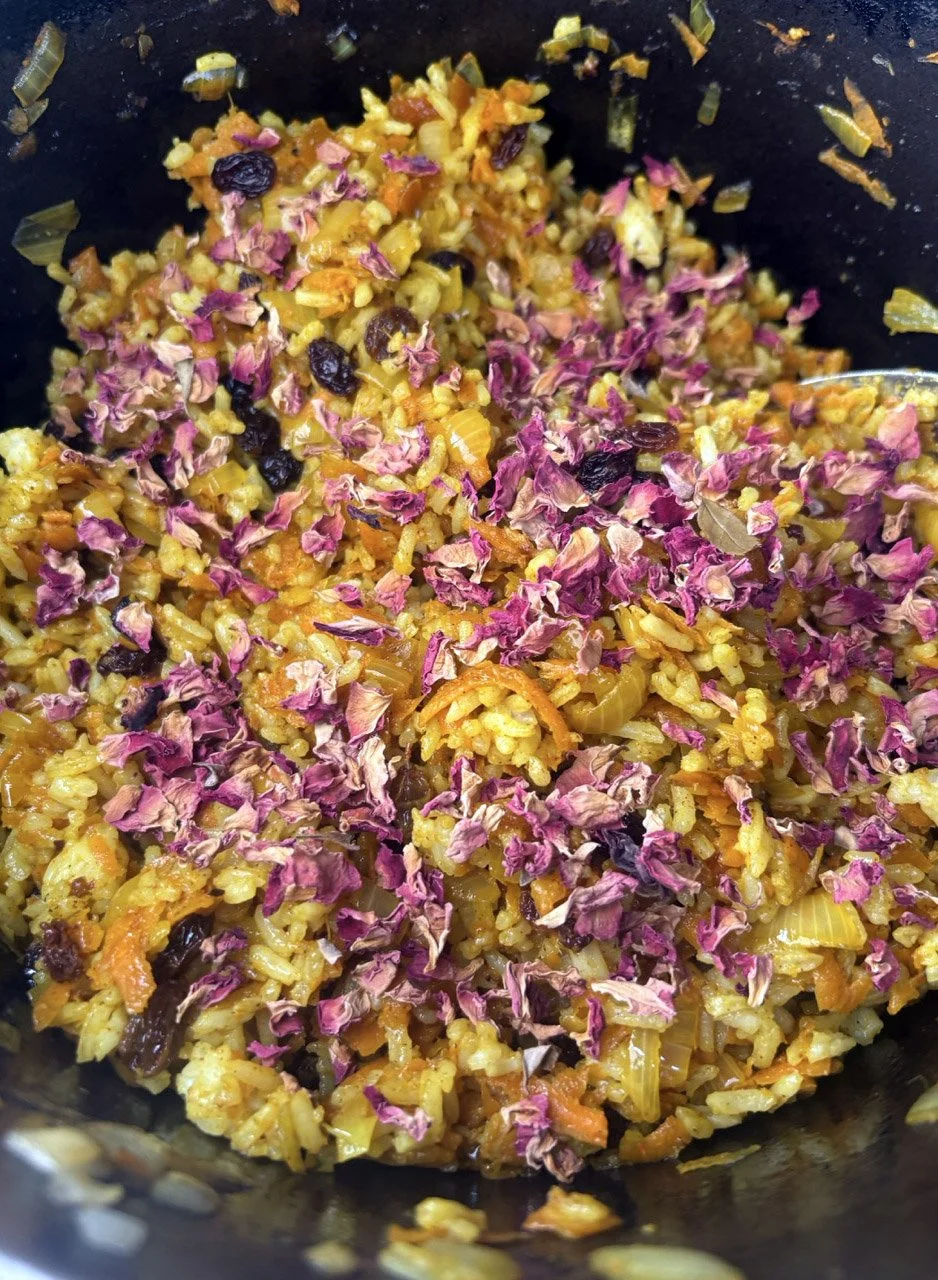 In the kitchen we made a Persian carrot rice dish, havij polo, featuring many flavors we may not have regular exposure to such as saffron, turmeric, candied orange peel, rose petals, and the use of cinnamon in a savory dish. The first grade chefs truly demonstrated their comfort and skill in the kitchen classroom and used a variety of tools to create a fragrant, colorful, and deeply tasty rice preparation from the Middle East.