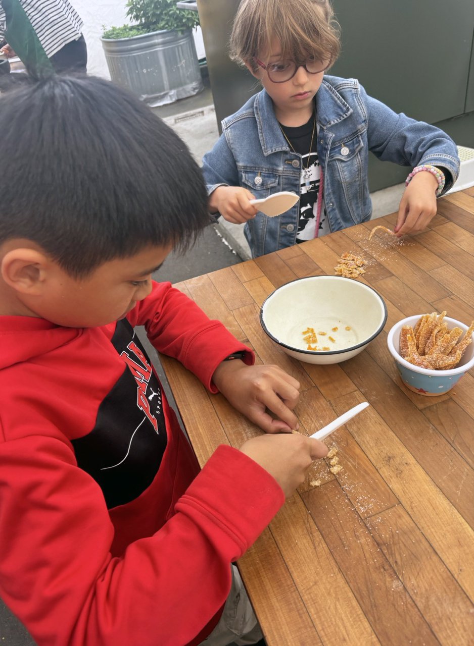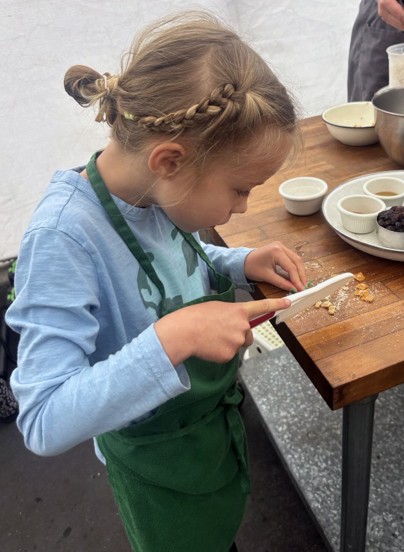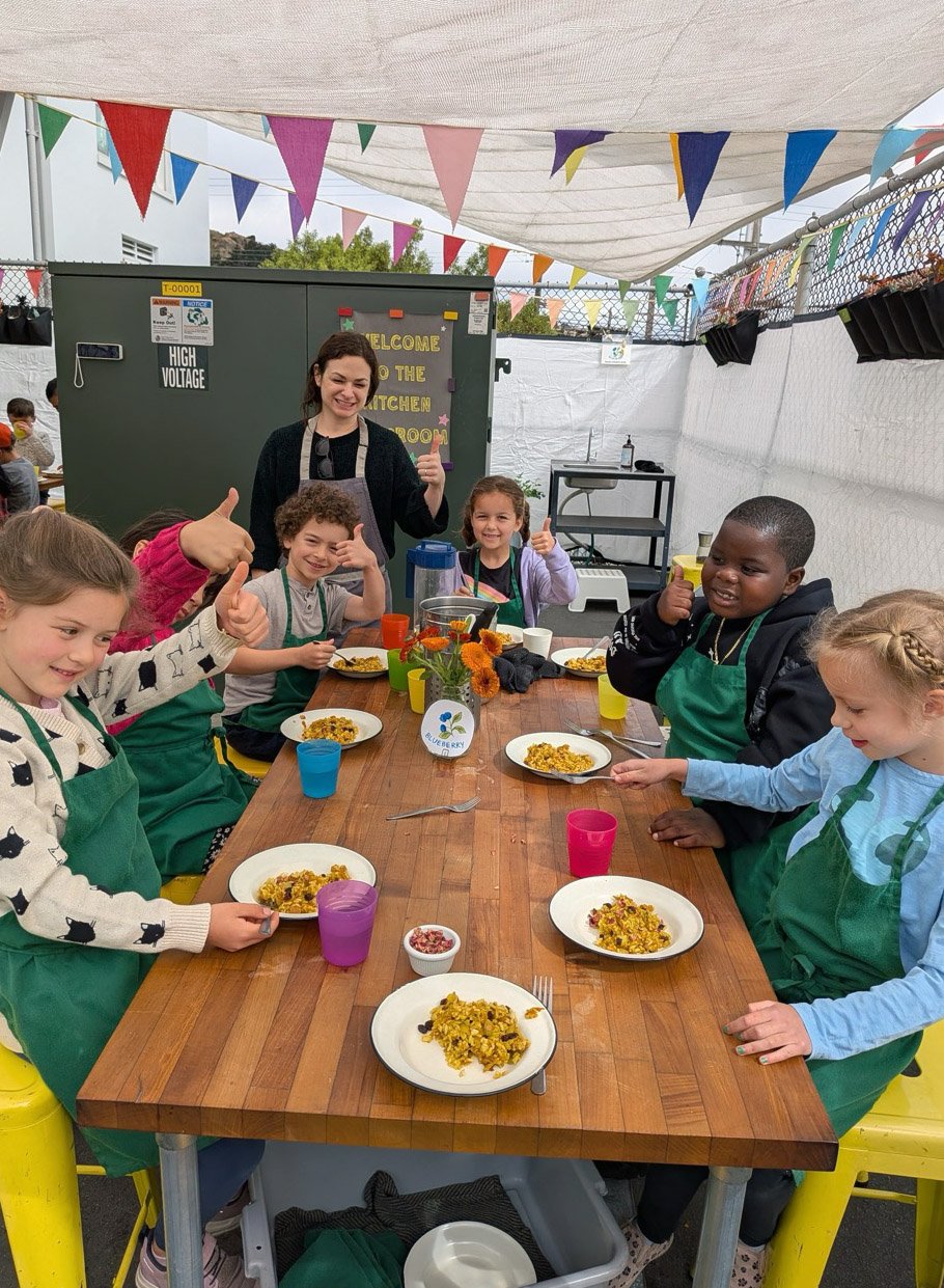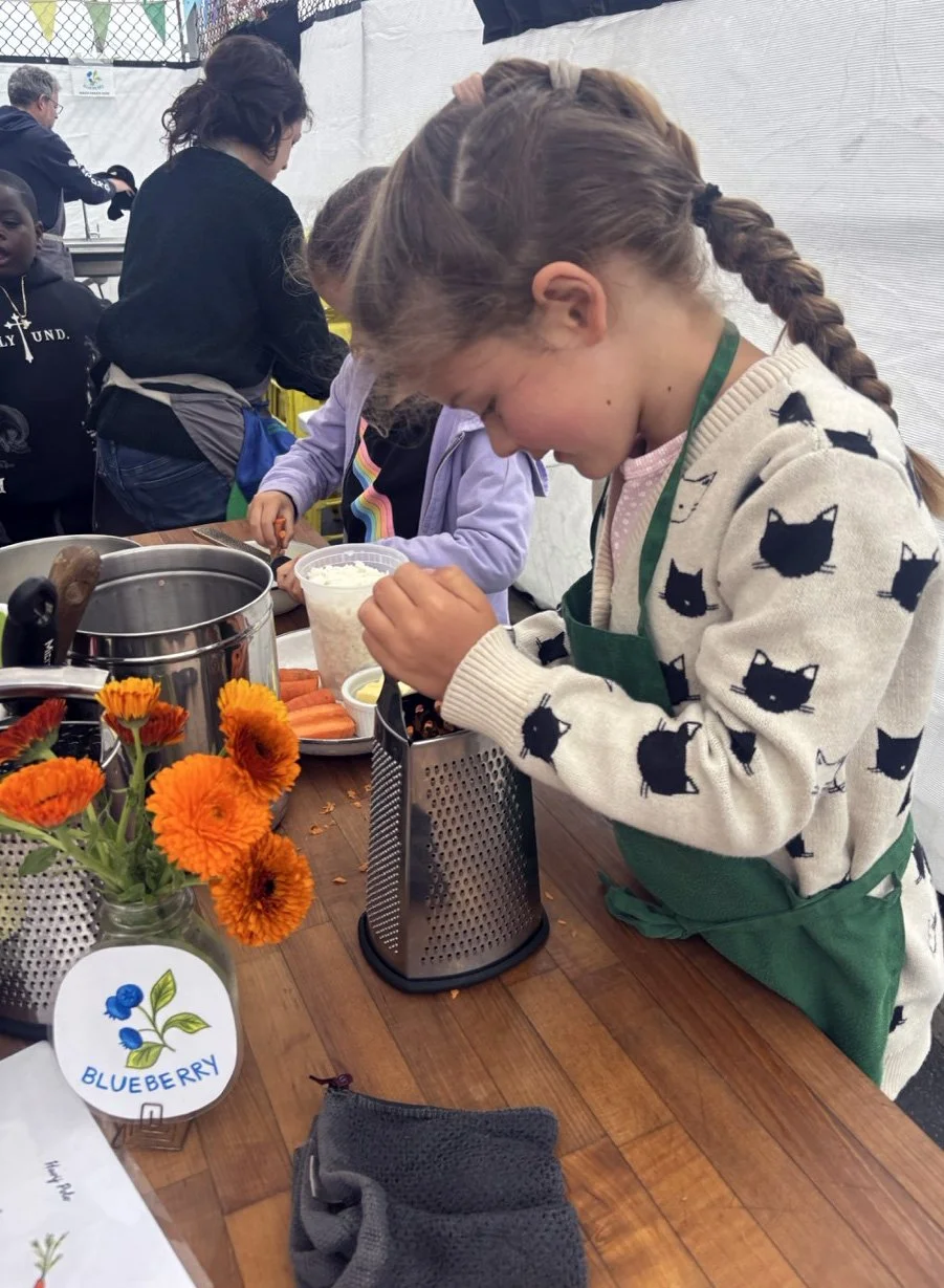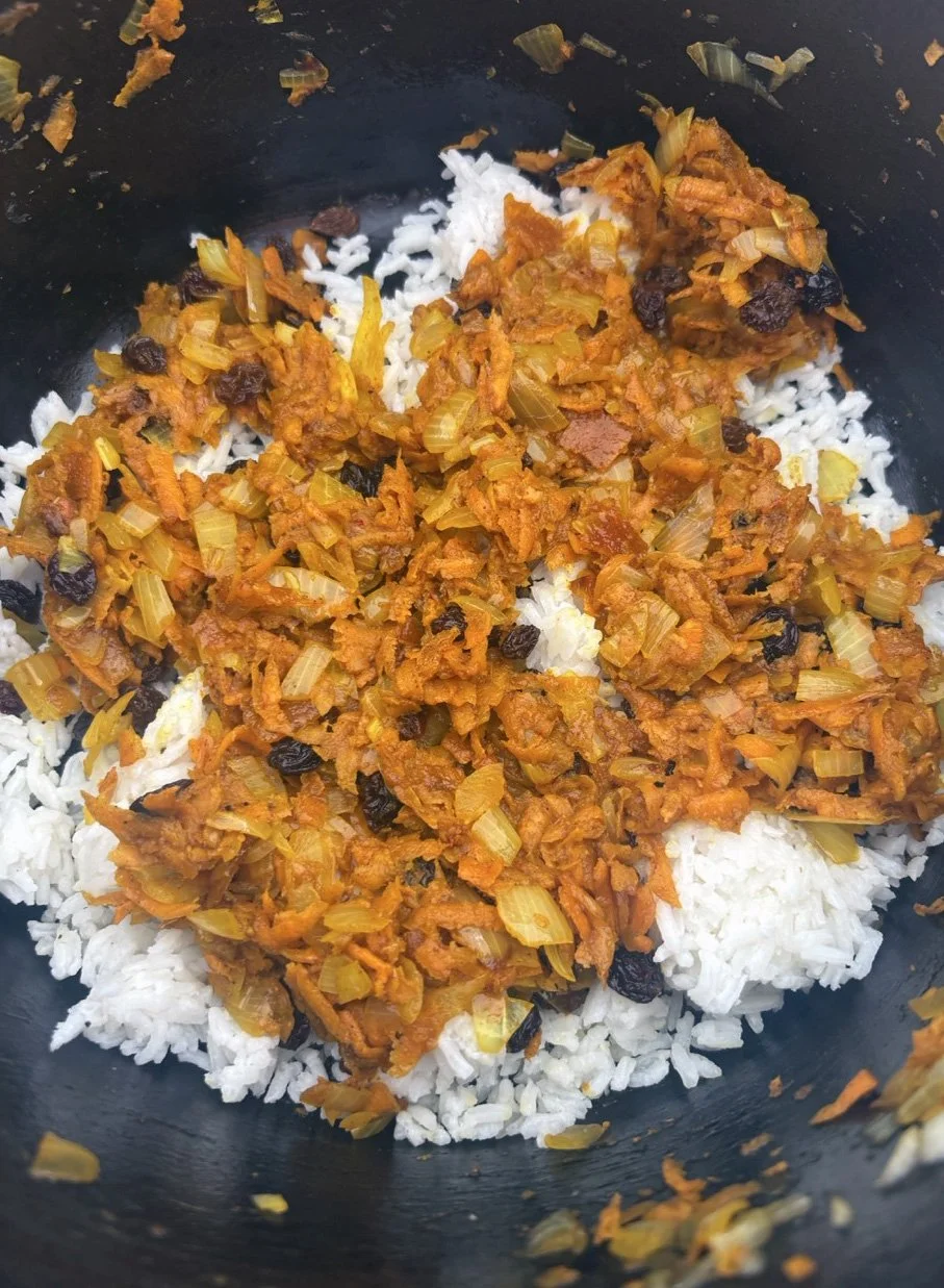 In the kitchen we made a Persian carrot rice dish, havij polo, featuring many flavors we may not have regular exposure to such as saffron, turmeric, candied orange peel, rose petals, and the use of cinnamon in a savory dish. The first grade chefs truly demonstrated their comfort and skill in the kitchen classroom and used a variety of tools to create a fragrant, colorful, and deeply tasty rice preparation from the Middle East.