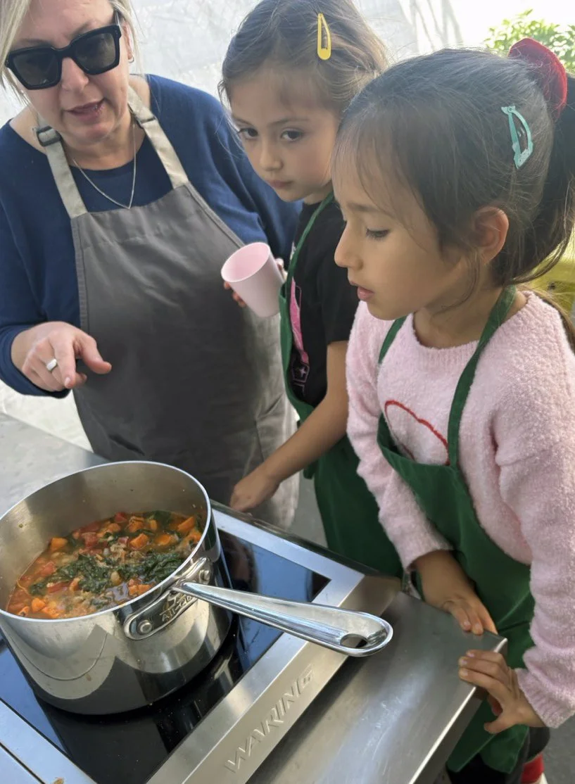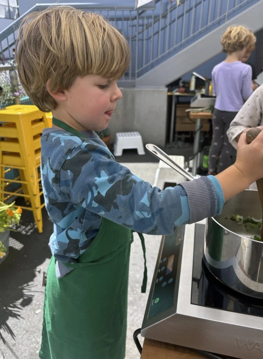 We started a two-week exploration of global foodways with the book Let’s Eat! Mealtime Around the World. The kindergarten chefs then shared which foods from countries like Sweden, Peru, Pakistan, and Nigeria they would like to try. We discussed how expanding our ideas about what to eat and trying new foods is a great way to stay healthy and grow our community.